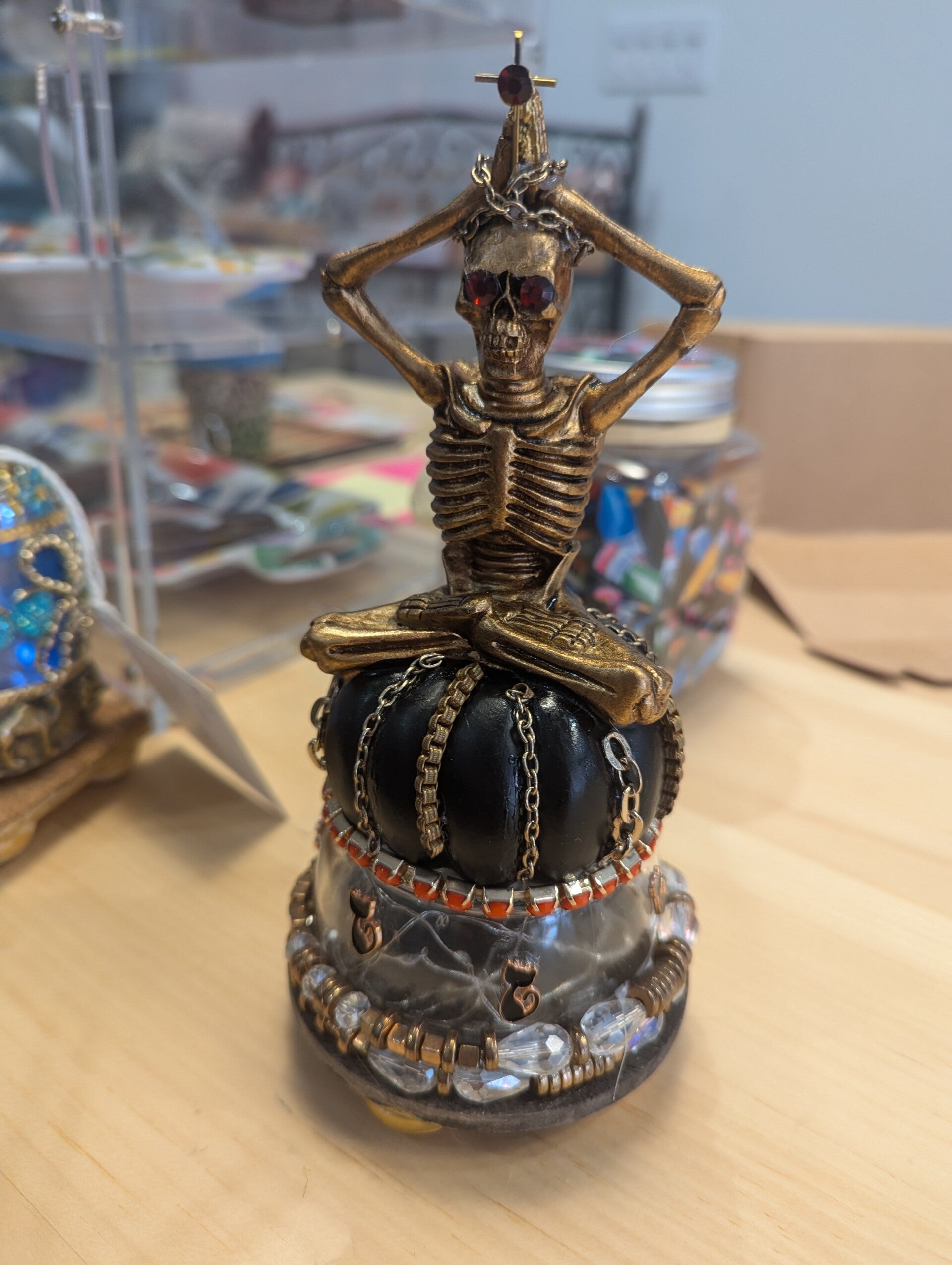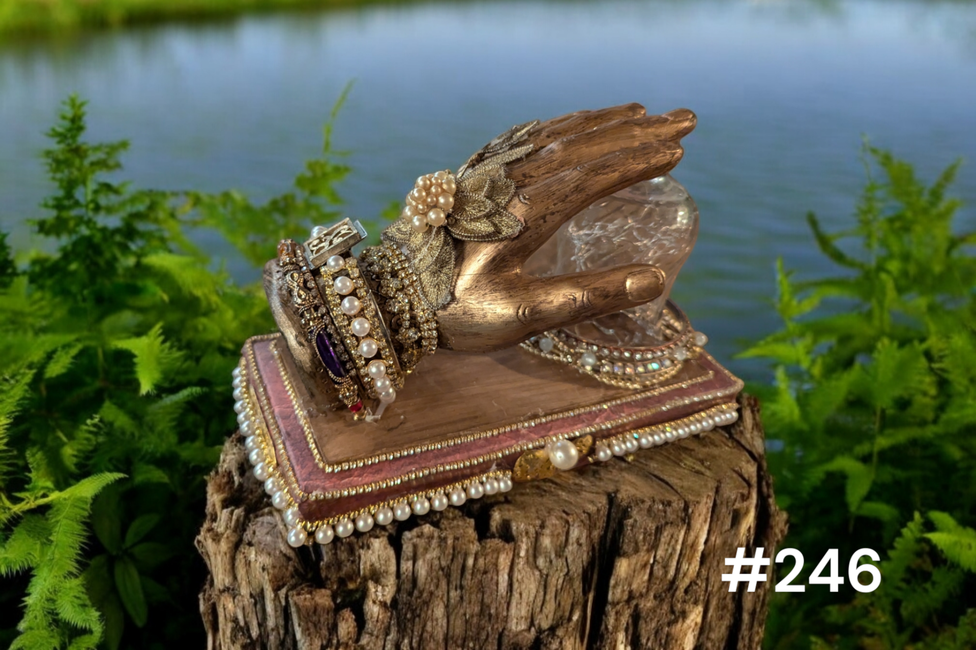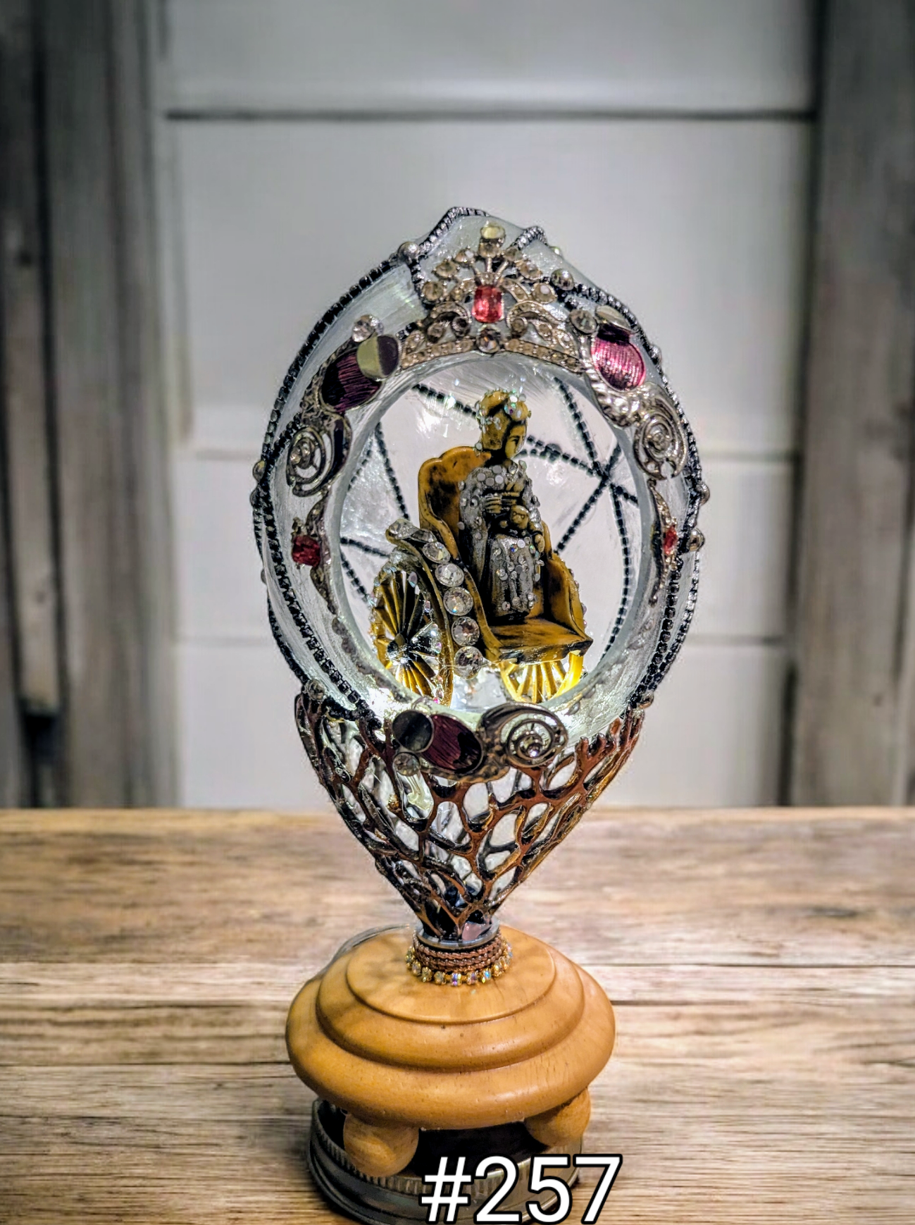 Tout a commencé le jour où, suite à une erreur médicale, j'ai perdu l'usage de ma main droite et que je voulais donner de la dextérité à ma main gauche. J'ai réuni mes passions pour la récupération, les vieux bijoux ainsi que ma fascination pour les œufs Fabergé pour créer des petites lampes d'ambiance, style veilleuses. Chaque pièce est un témoignage de résilience et de créativité.